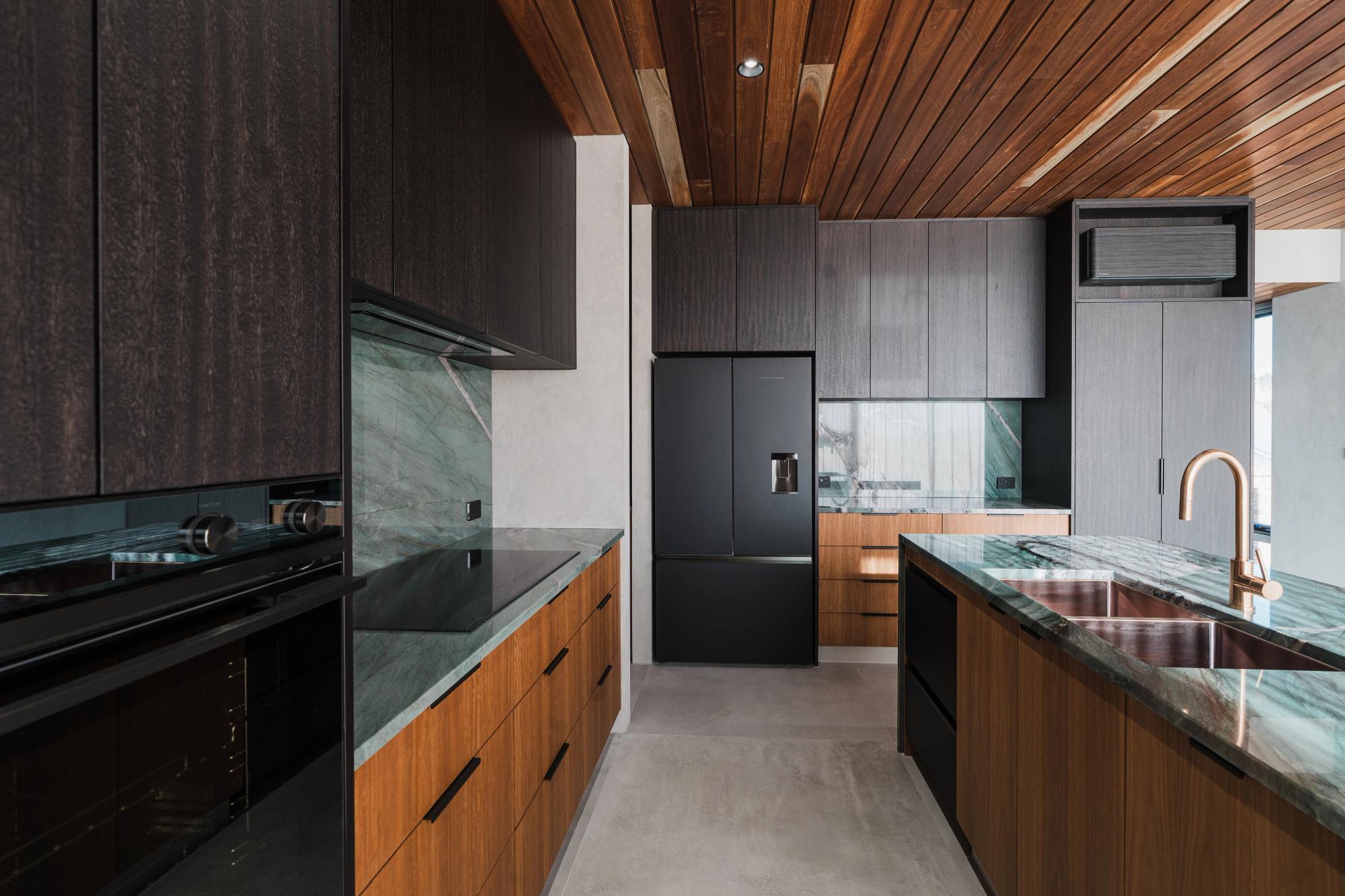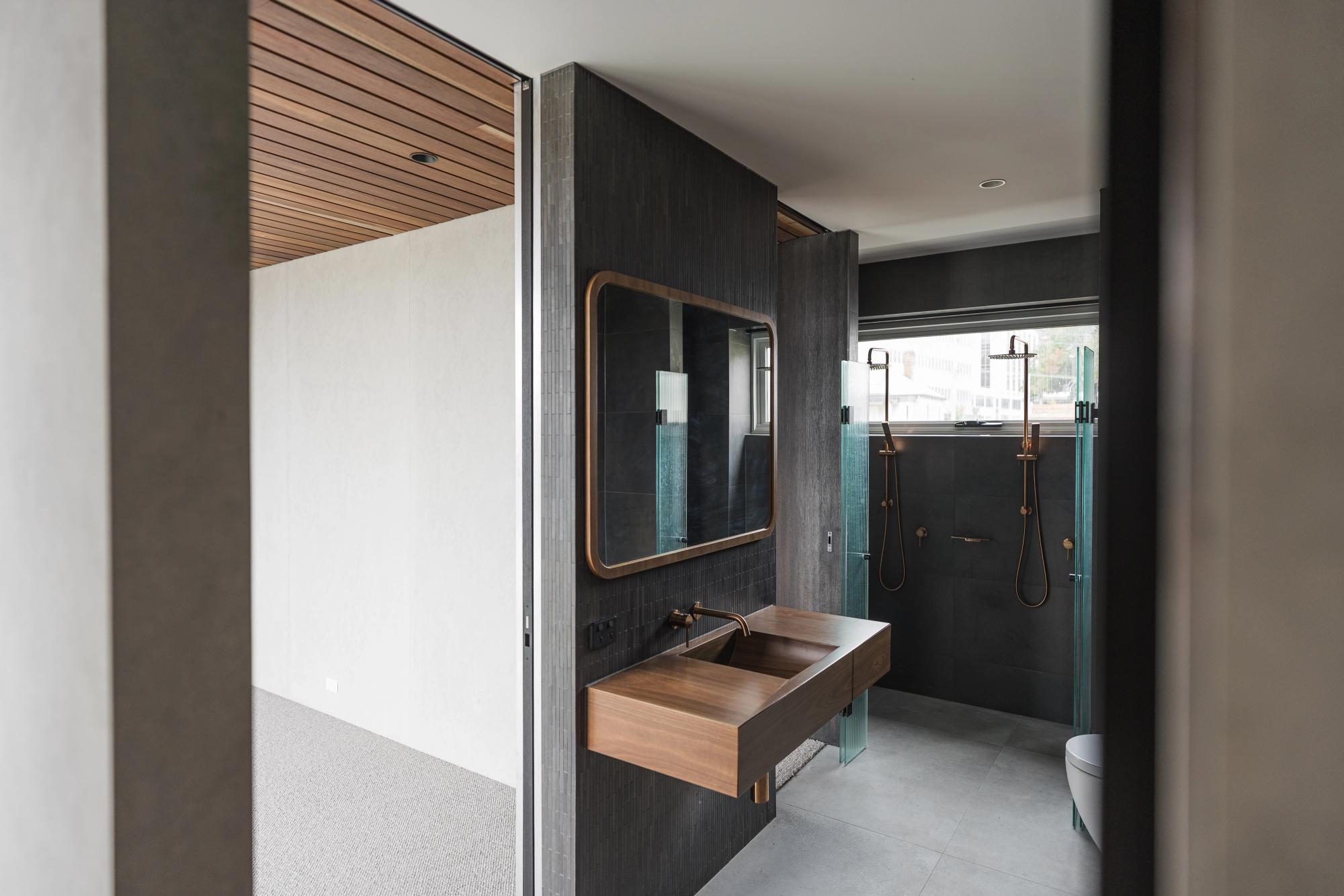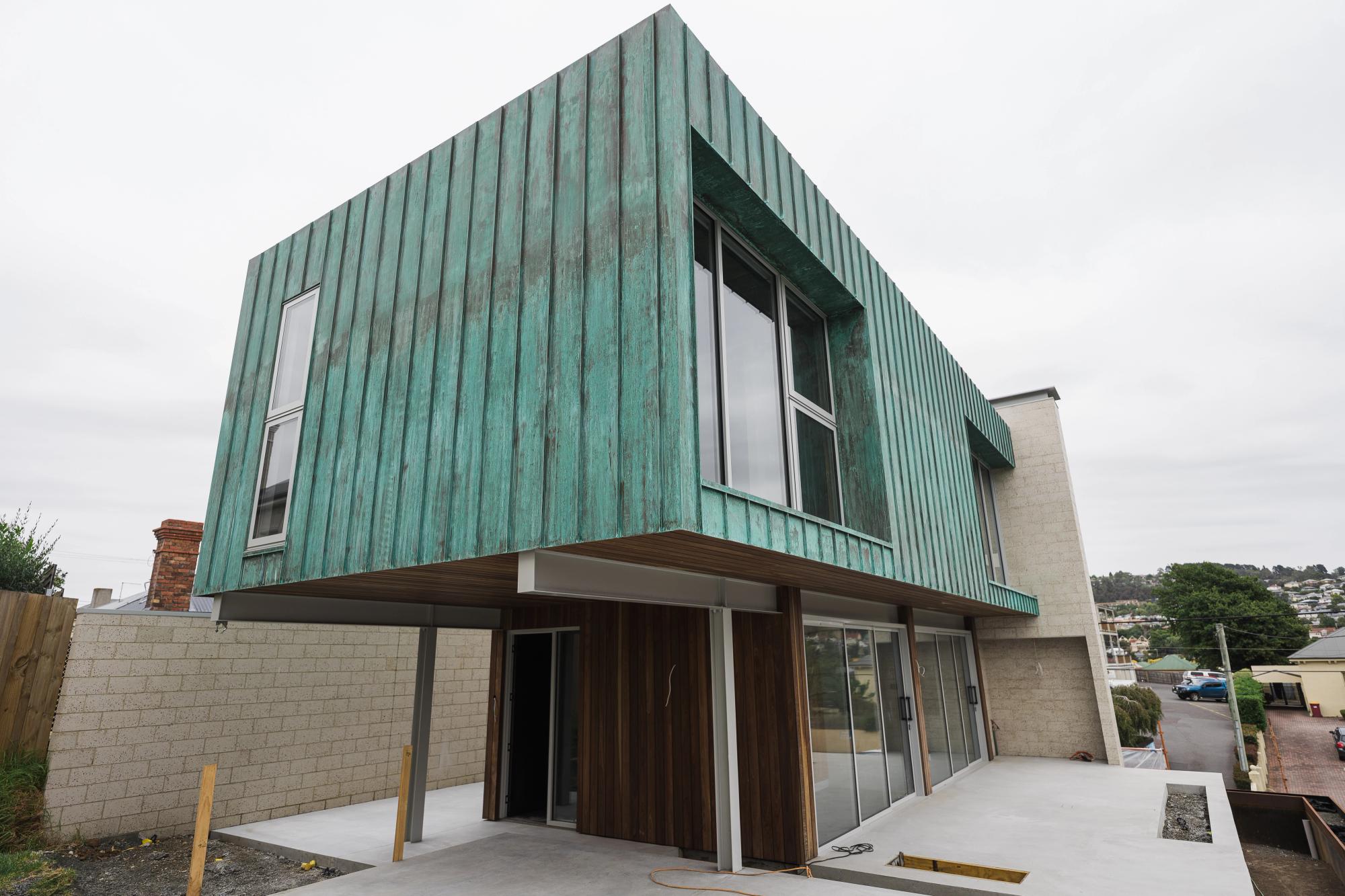 This Charles Street build in Launceston was one for the books. Tucked right in the heart of the city, this ultra-modern townhouse pushes design to the next level. The exterior turns heads with its striking patina copper cladding being a finish that will only get better with age. Paired with polished copper details that flow through the interiors.