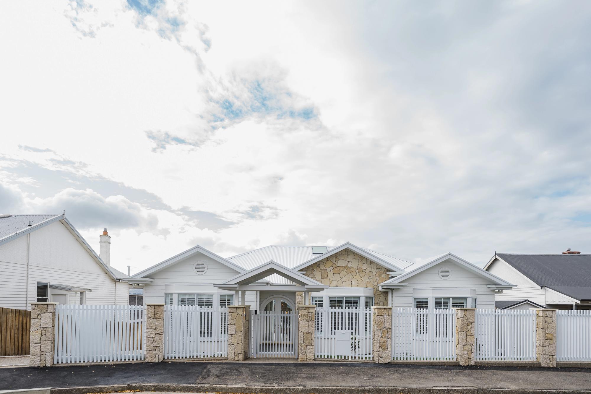Hornsey... a complete knockdown and rebuild in timeless Hampton style, right in the heart of East Launceston. At 500m², this home has five spacious bedrooms, three luxurious bathrooms, two expansive living areas, and a massive eight-car garage. Every detail has been carefully considered: premium Taswood joinery and Symmetrie Interior Design, cleverly hidden doors, statement wallpaper throughout, and natural stone by Eco Stone. It’s a home that feels both grand and inviting.
