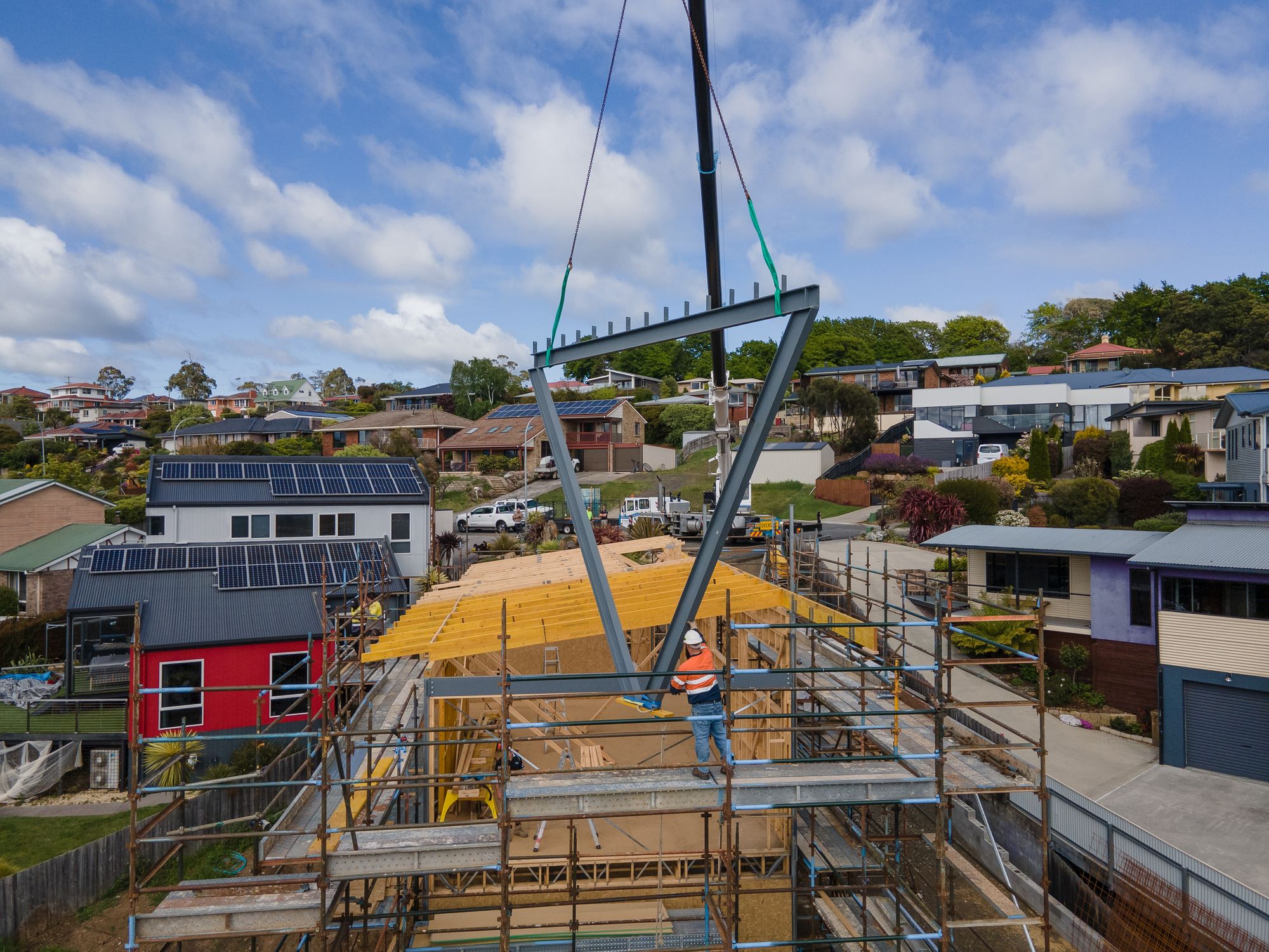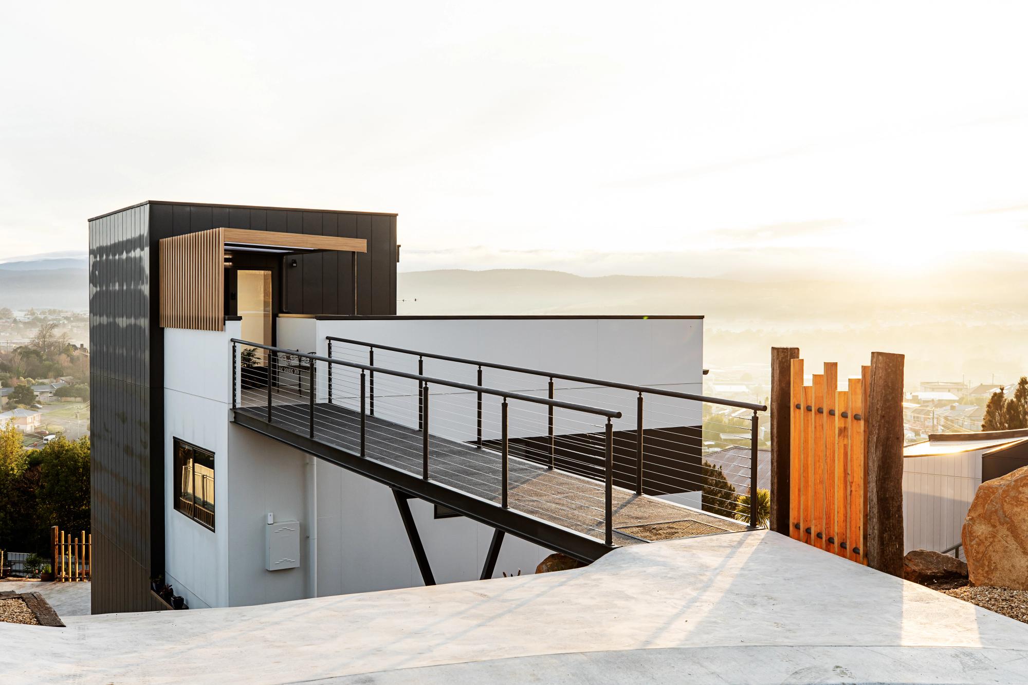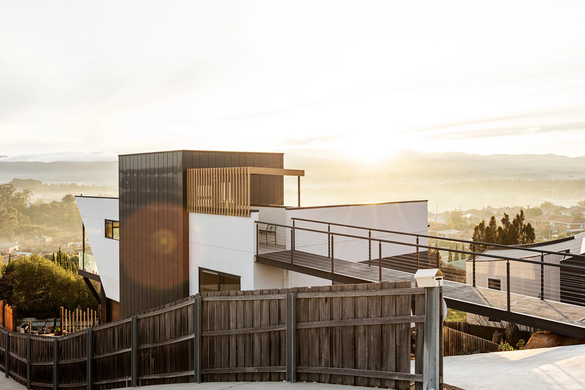 10/10 views, perfect solar access, and plenty of privacy, all packed onto a steep, wedge-shaped block.